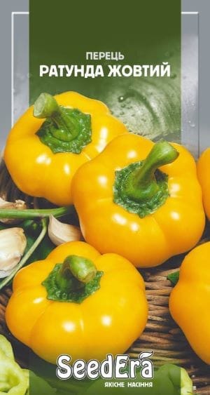 Середньопізній сорт солодкого перцю Ратунда жовта (130-145 днів) для відкритого ґрунту і плівкових теплиць. Кущ середньорослий, до 60 см заввишки. Плоди перцю золотисто-жовтого кольору. Мають форму маленького гарбуза, плоско-округлі, ребристі, з товстими «частинними» стінками (близько 7 мм), вагою близько 150 грам, з соковитою, м’ясистою м’якоттю.