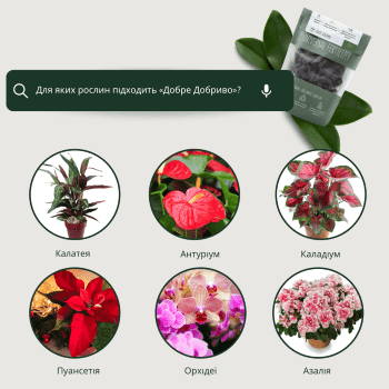 - Для кореневого підживлення декоративних кімнатних рослин та розсади;